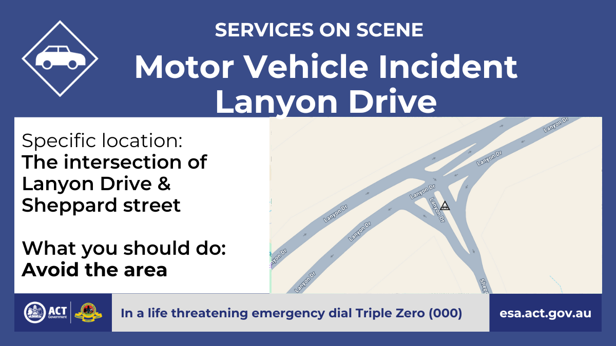 There's been a motor vehicle incident on Lanyon Drive, near the intersection with Sheppard street.