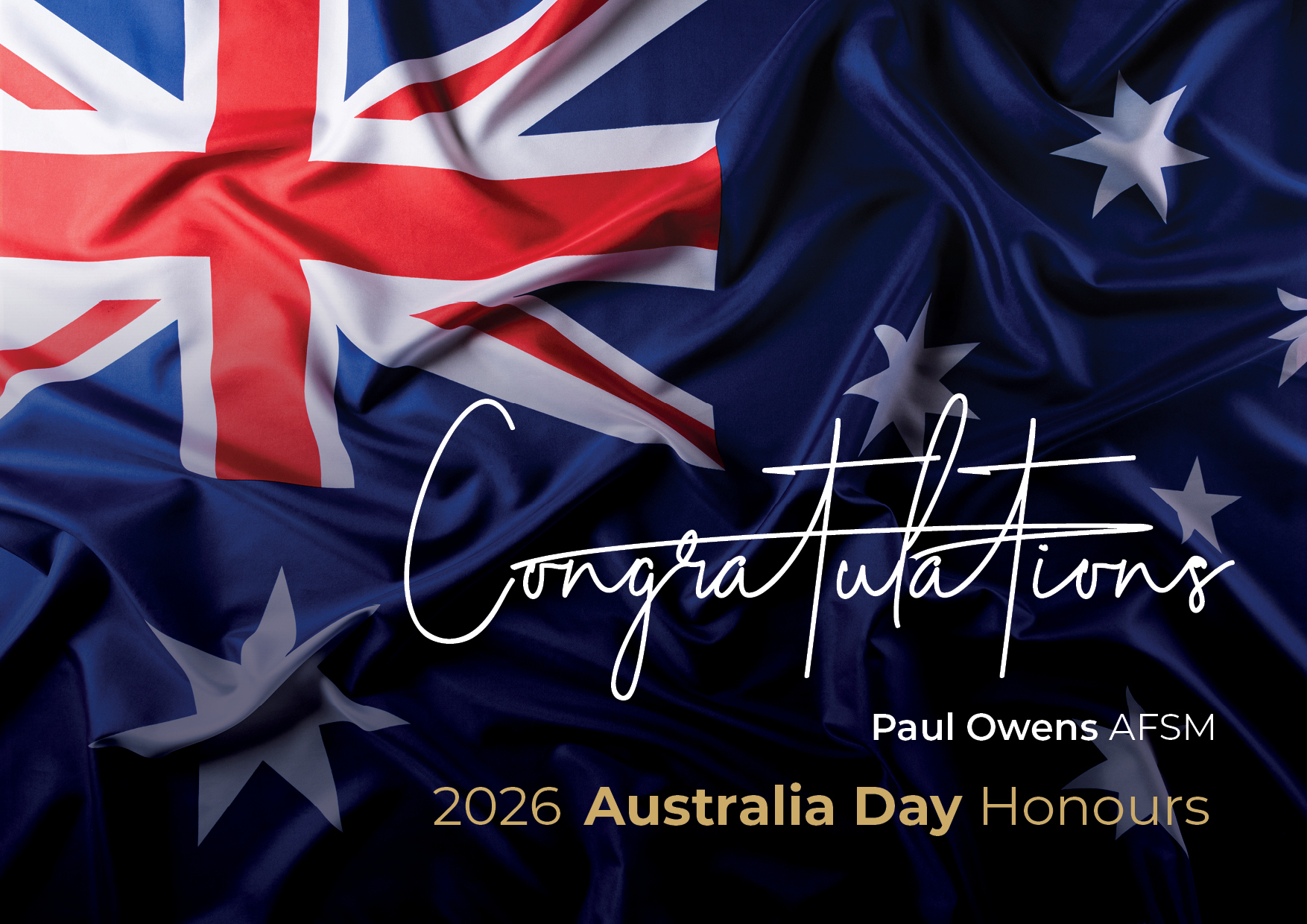 The ACT Emergency Services Agency congratulates ACT Fire & Rescue Commander Paul Owens, who has been announced as a recipient of the Australian Fire Service Medal (AFSM) in the 2026 Australia Day Honours.