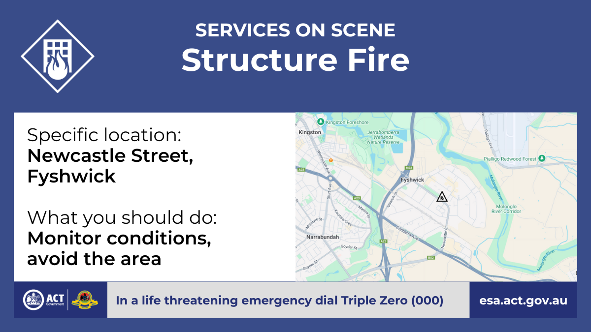 ACT Fire & Rescue, the ACT Ambulance Service, and ACT Policing are in attendance.